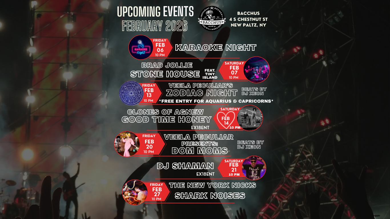 Booking Requests: bacchusnewpaltz474@gmail.com